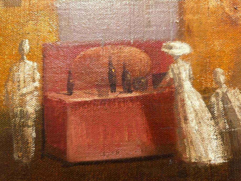 Vasilije Josip Jordan “Teatar zivota”. Ulje na platnu. 24x30 cm. Godina nastanka 2004. Procjenjena vrijednost 2006. bila je 2.000 €. Slika je u originalnom stanju bez ikakvih ostecenja. Stoji na zidu u dnevnoj sobi.
