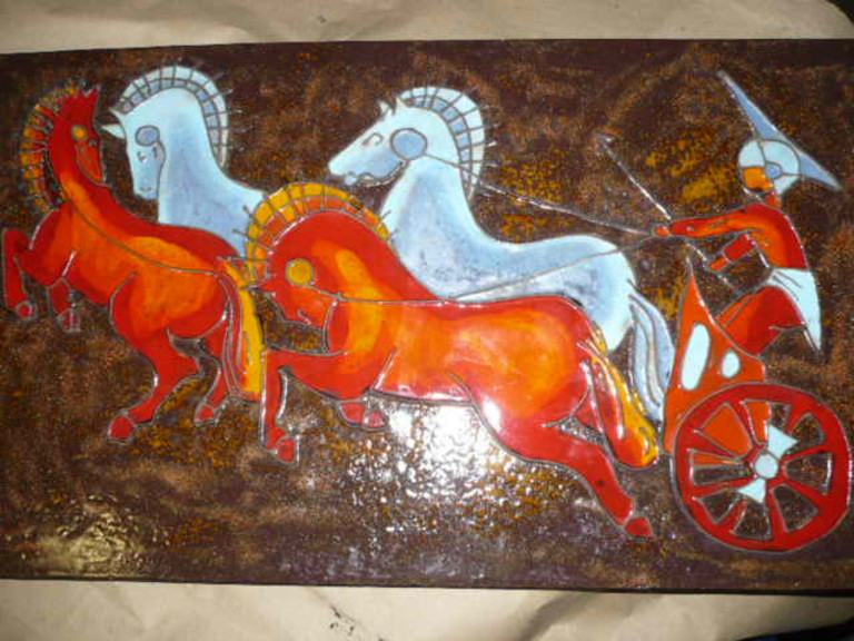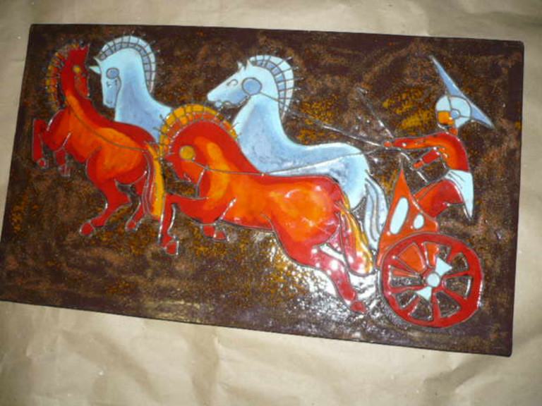 VELIKA KERAMIČKA SLIKA 'RATNIK NA ČETVEROPREGU' DImenzije: 59x35x1cm Masivna, teška.