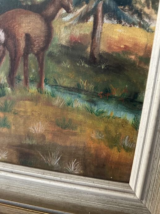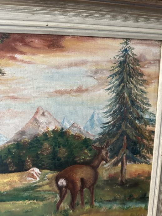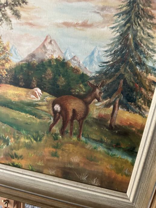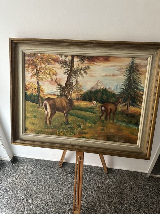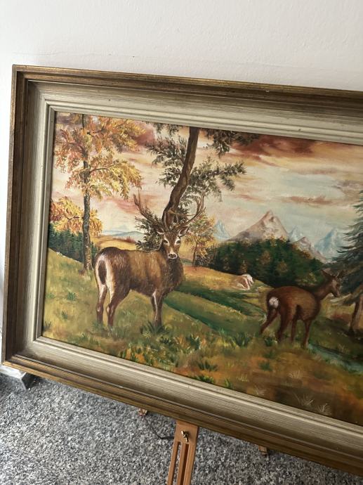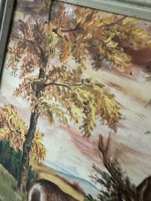 Veliko staro ulje na platnu sa motivom Jelena,80x60cm,od iza nesto i pise na drvetu,ali ne mogu odgonetnuti sta,saljem i postom !