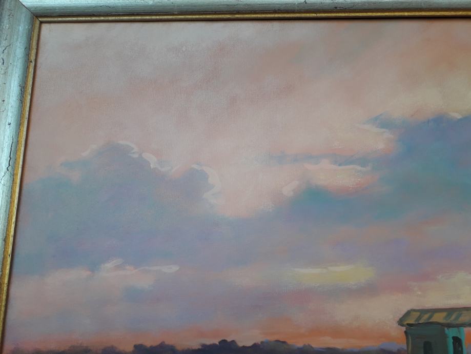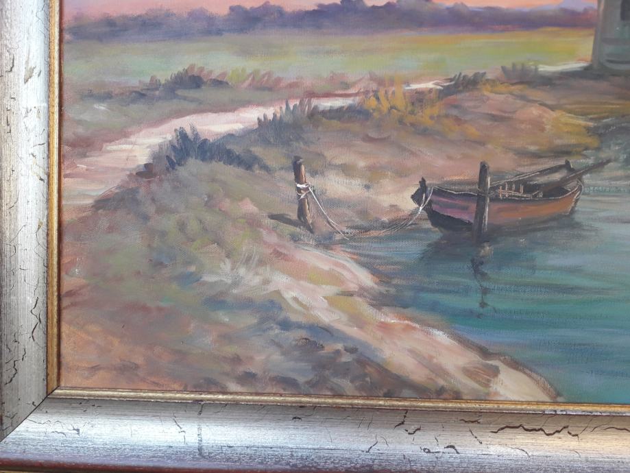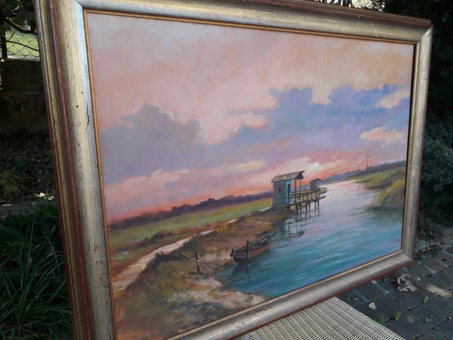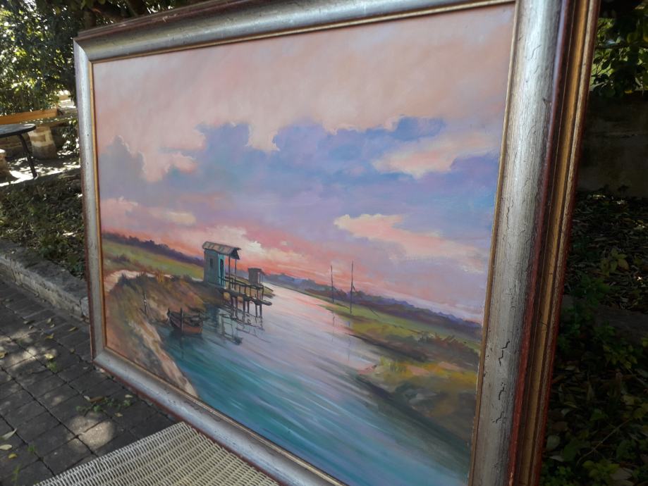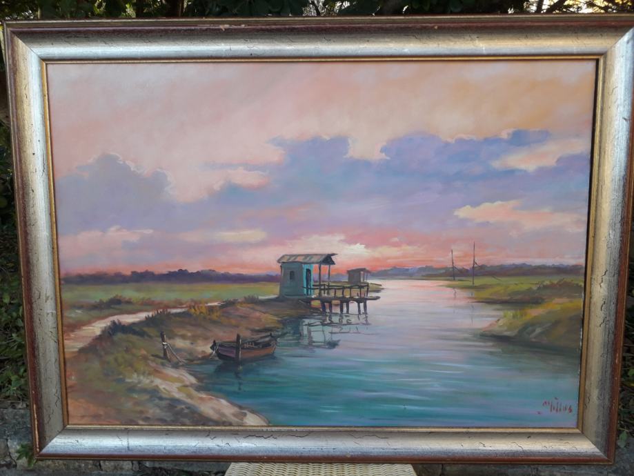 Veliko ulje na platnu, autor je talijanski/toskanski pejzažista Mario Illusi alias Millus. Slika je savršenom stanju, kao nova. Masivna rama na par mjesta malo ogrebana. Dimenzije slike su 116x86 sa okvirom odnosno 100x70 bez okvira.