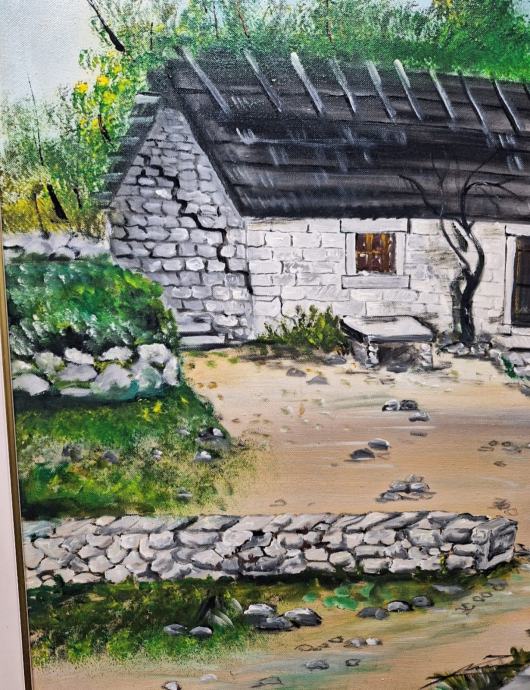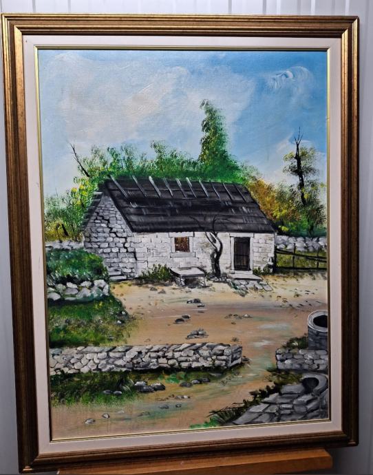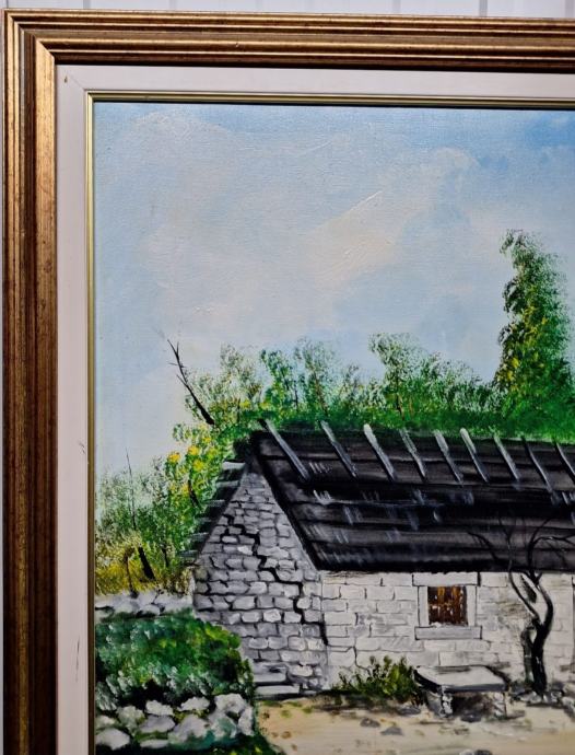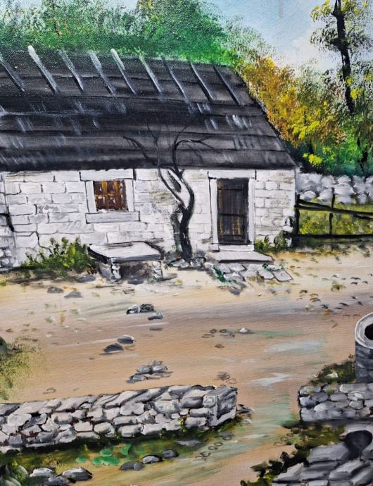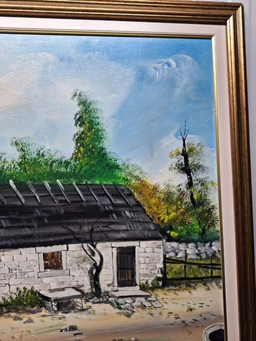 Ulje na platnu velikih dimenzija 93x73cm, "Rodna kuća" (autora ne prepoznajem, mislim da je Jozić).
