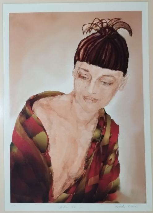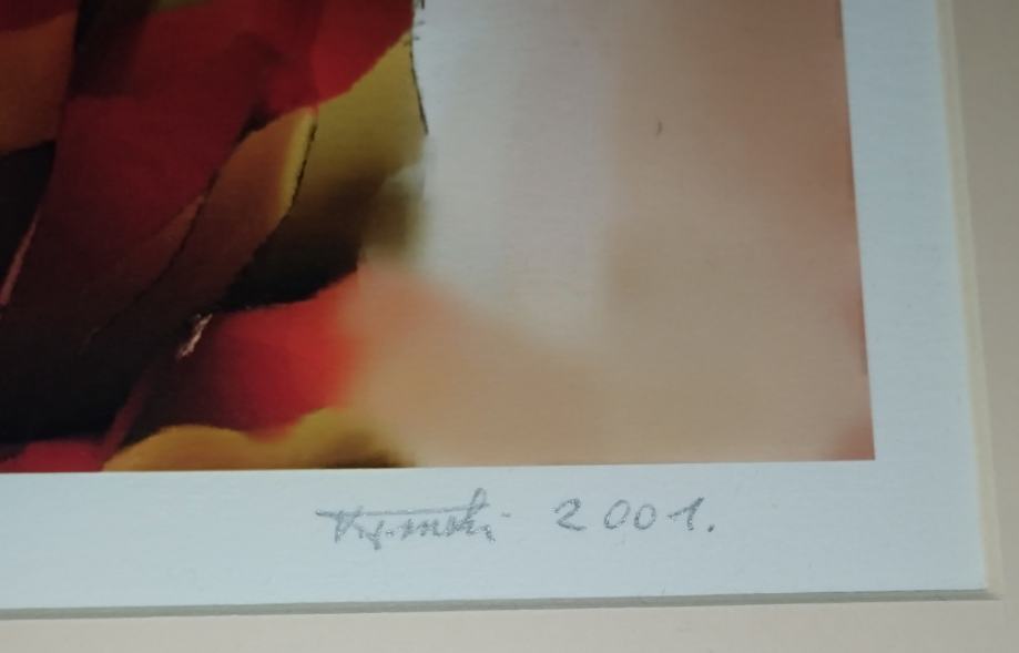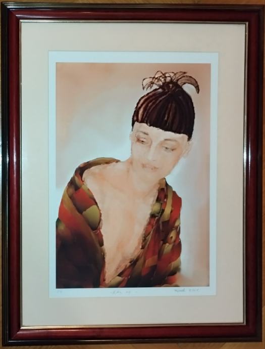 Grafika iz 2001. (naziv grafike je "Nika 06") cijenjenog hrvatskog akademskog slikara, Velimira Trnskog. Profesionalno uramljeno i ostakljeno. Ukupne dimenzije 54x42cm (sama grafika 39x28cm).