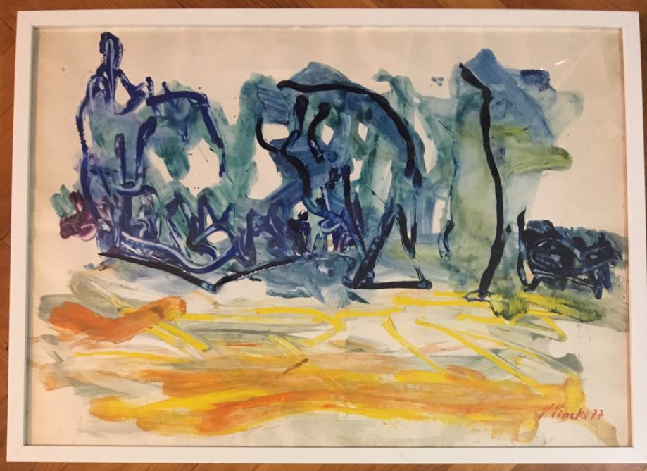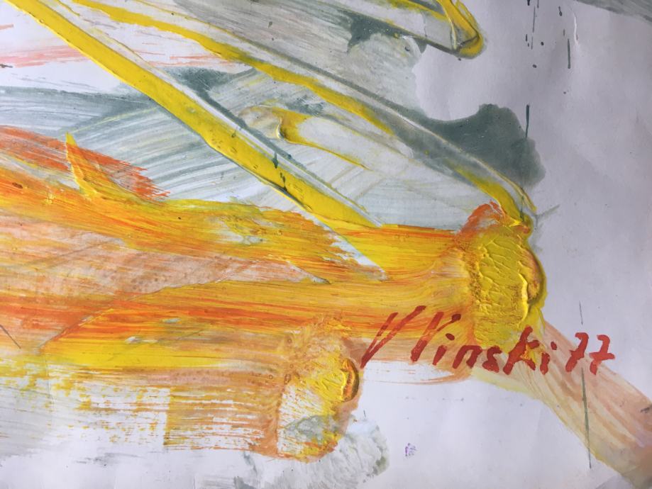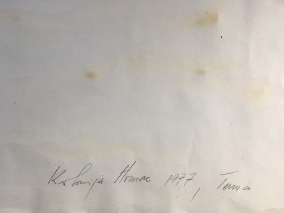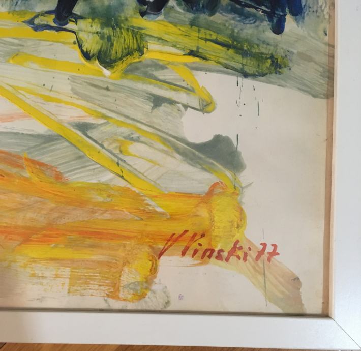 Crtež akrilom na papiru, apstraktni motiv, poznate hrvatske akademske slikarice Vesne Vinski. Uokvireno i ostakljeno. Dimenzije rada s okvirom su 72x52cm. Cijena je fiksna!!!