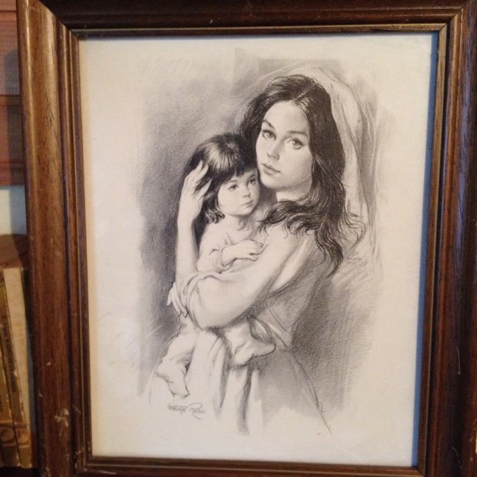 predivna grafika na papiru, djete u narucju majke, famoznog umjetnika Vicento Roso. Dosta stara grafika, uokvirena.