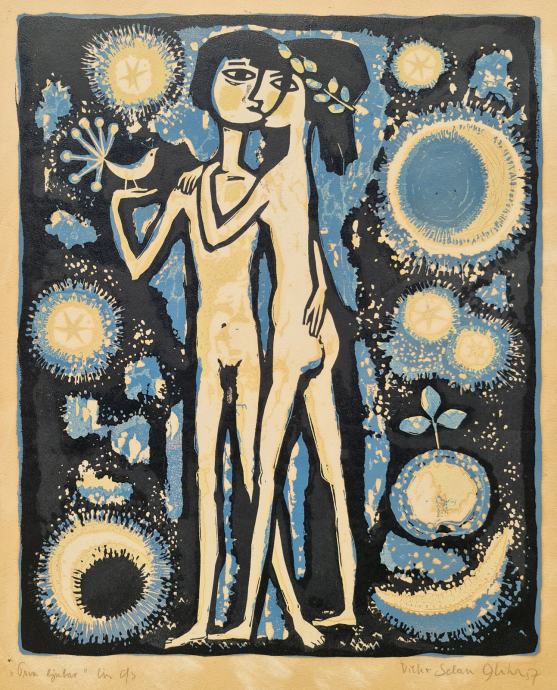Vilko Selan Gliha "Prva ljubav" linorez 70x50cm; iz 1957 godine,
