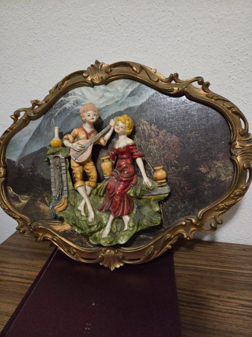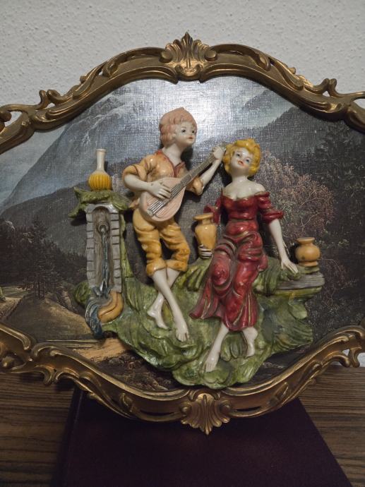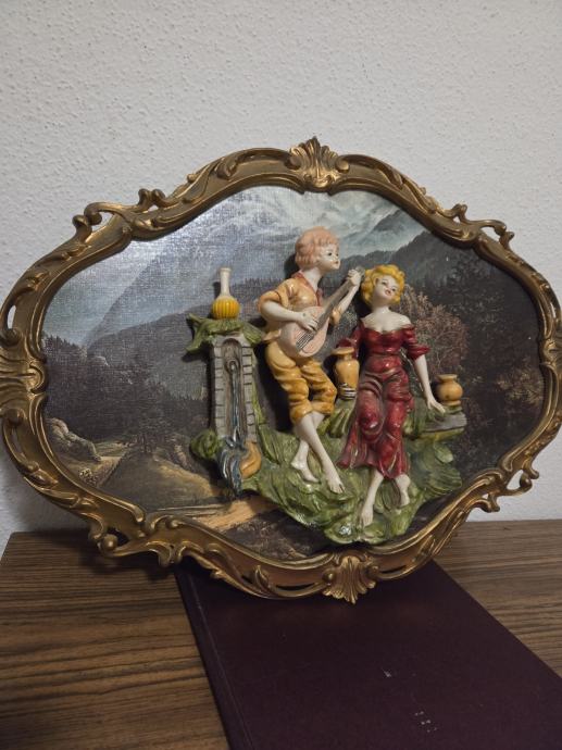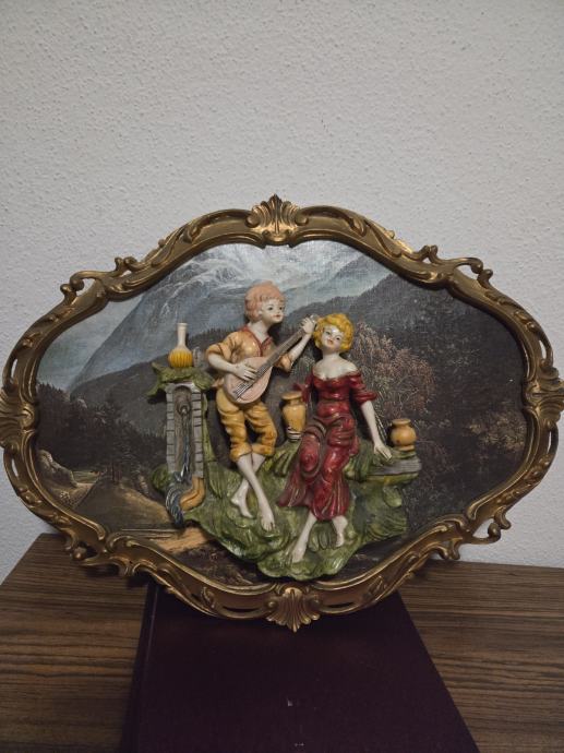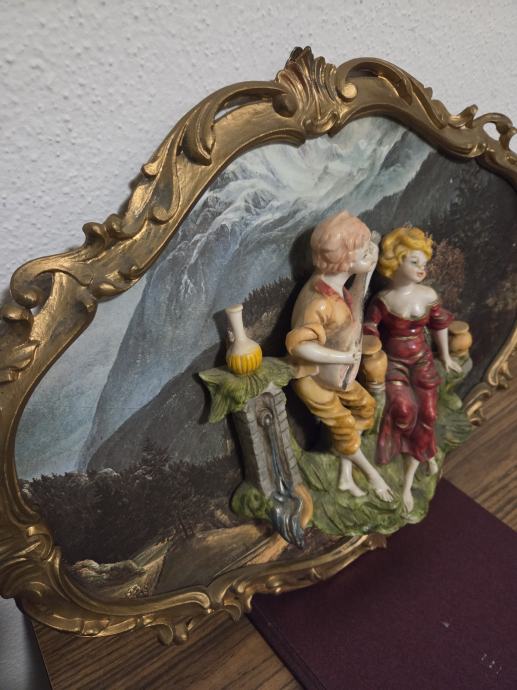 U rokoko stilu iz perioda 1940-60 .g. u pozlata okviru od gipsa,na lesonitu te ,Ivica i Marica, na zdencu života podno Alpa u vojsku rad. Dimenzije 50/37 cm. Bez oštećenja. Dostupnost od 25.12