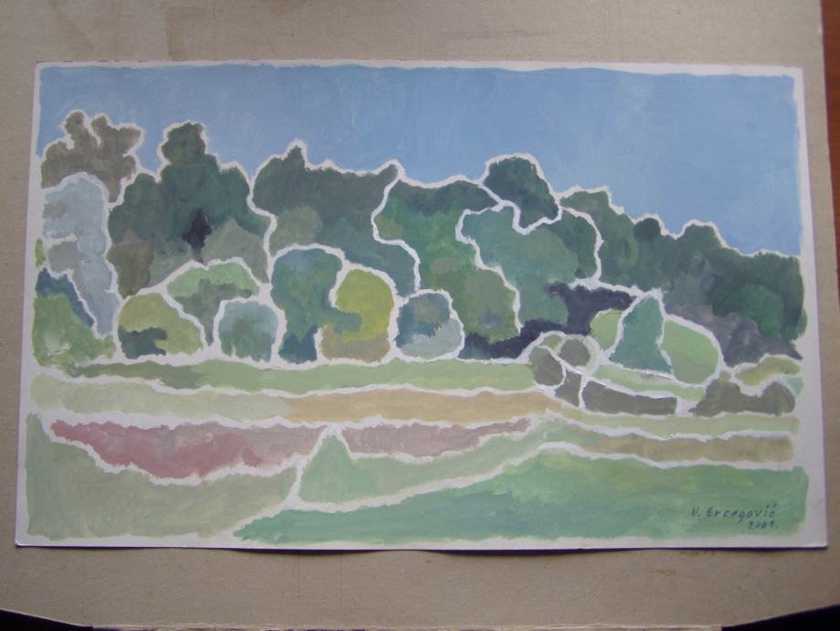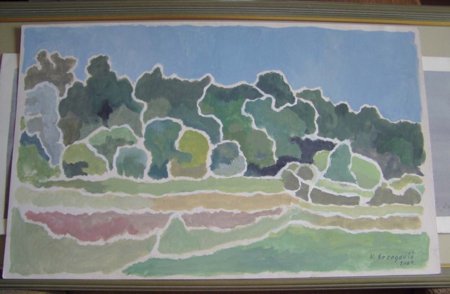 "Pejsaž - šuma", prekrasan rad, iz 2001. god., 63x38cm