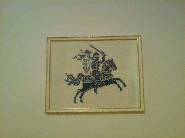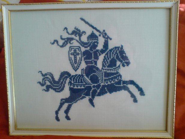 Prodaje se predivna slika, nova, 100% domaći ručni rad, tematika "Vitez na konju", vezena na akrilu, bijela podloga, veličina 40x32cm.