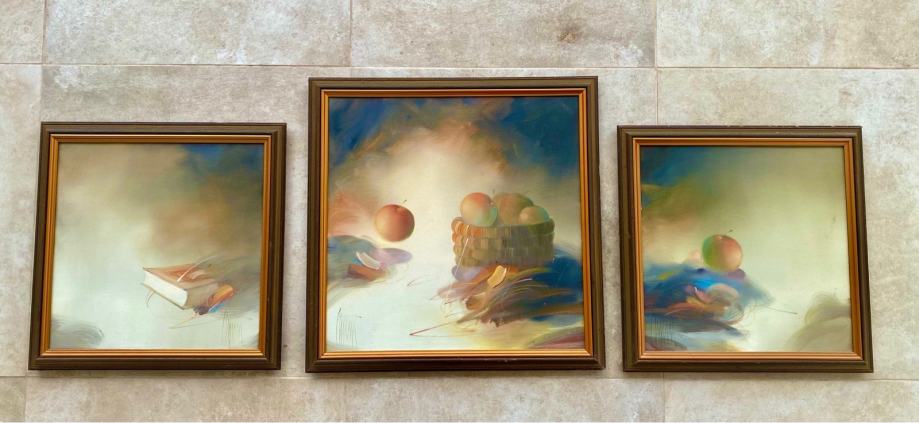 Prodajem triptih splitskog akademskog slikara Vjekoslava Stipice. Triptih je izrađen tehnikom ulja na platnu i datira iz 80-ih godina. Dimenzije središnjeg ulja su 50x50 cm, dok su dva manja dimenzija 40x40 cm.