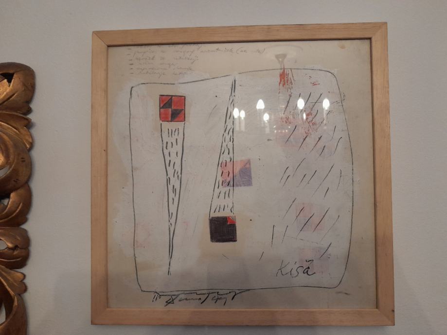 Dimenzije predmeta 38,5x38,5cm.Vidljiv utjecaj Mangelos-a.Jedna od boljih Trokutovih slika.Potpisano sta je jako bitno.Vladimir Dodig Trokut je rođen 4. 4. 1949. u Kranju, ugledni hrvatsko svjetski likovni umjetnik, šaman, sakupljač umjetnina, galerist, muzeolog, donator, povjesnik, antropolog, teoretičar, predavač, publicist, tvorac je mnogobrojnih muzejskih projekata i proizvodnih poligona – tvornica-muzeja, osnivač je prvog svjetskog Anti-muzeja (Anti-muzej je projekt, a ne konvencionalan muzejski koncept), iščinio je više od 700 problemskih izložbi, akcija, performanasa, body arta, instalacija, wundercammera, living teatra, monodrama, kazališnih predstava. Zastupljen je u više enciklopedija i leksikona, među kojima i u leksikonu "Who is Who?", kao i u svjetskim pojmovnicima. No-umjetničko djelovanje oficijelno započinje 10. veljače 1968. godine u Splitu i tamo naukuje, do 1976. godine, kod Ante Kaštelančića i Božidara Jelinića, a od 1976. živi i djeluje u Zagrebu, naukuje kod Dimitrija Baščićevića - Mangelosa..