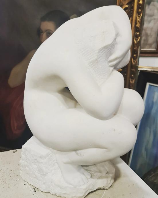 Vladimir Herljević "Pletem se" skulptura u mramoru bijeloj carrari 52x40x30cm!