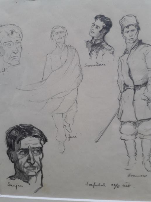 Vladimir Kirin,Vojnici, crtež olovkom iz 1. svjetskog rata, RARITET
