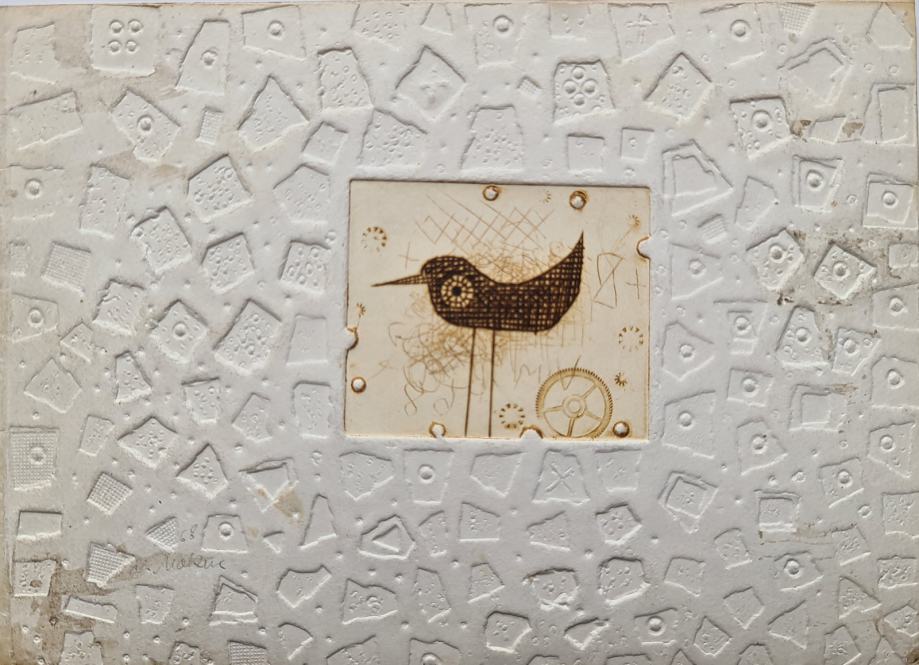 Vladimir Makuc "Ptica" suha igla / reljef na papiru 15x15cm; iz 1968 g