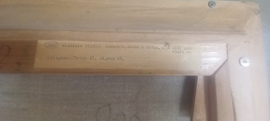 Slika Vladimira udatniya,u org.stanju.lutka i avion,bila na više izložbi.dogovor oko cijene.nalazi se u katalogu.rad 60tih.