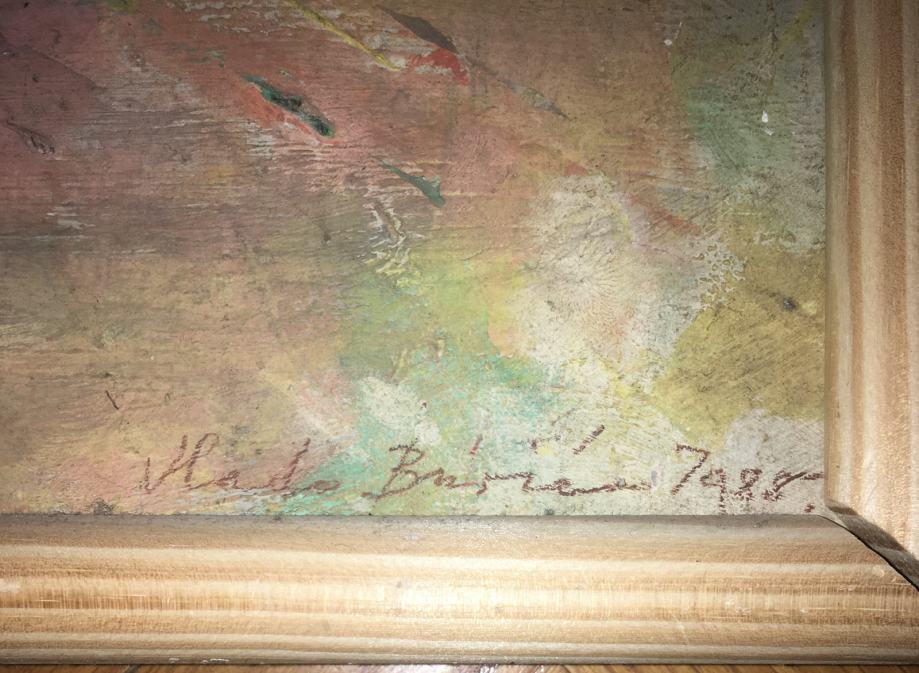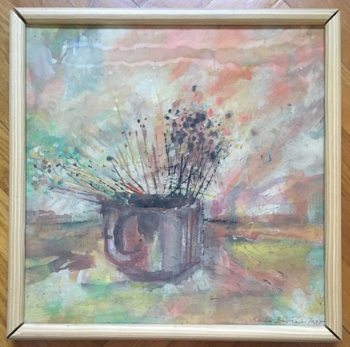Vlado Burić – Cvjetni motiv, ulje iz 1988., dimenzije s okvirom 39x39cm. .
