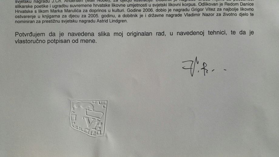 uz sliku dobivate certifikat autora! ( u prilogu fotografija) (uz fotografiju autora kako potpisuje sliku) (fotografije u oglasu su zaštićene autorskim pravom)