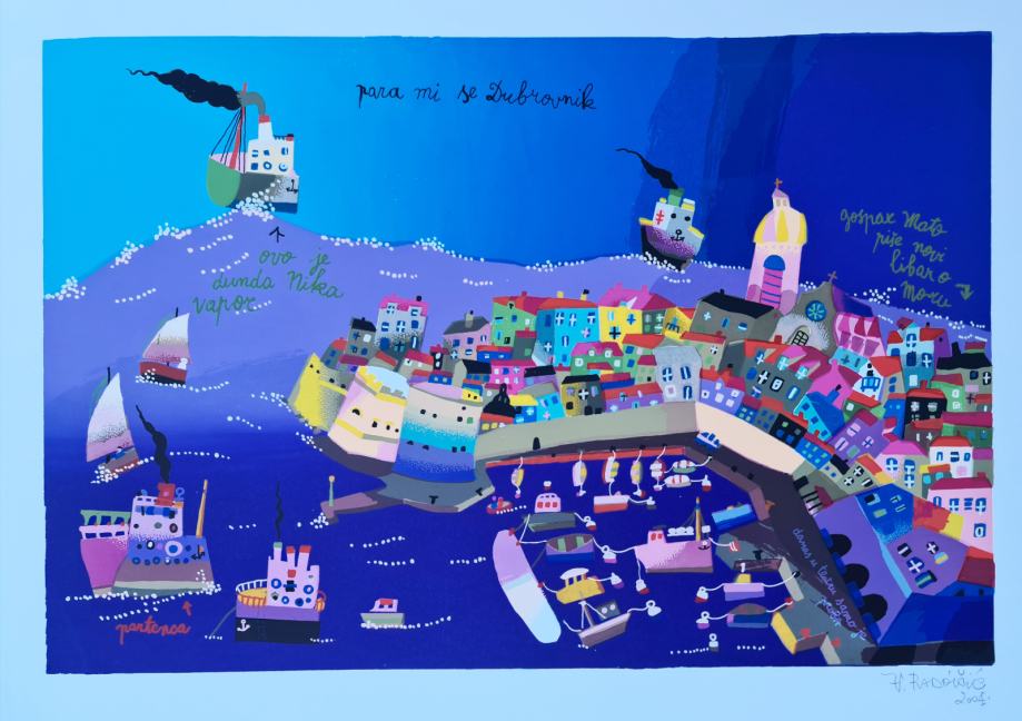 Vojo Radoičić "Dubrovnik" svilotisak serigrafija 50x70cm; iz 2004. god