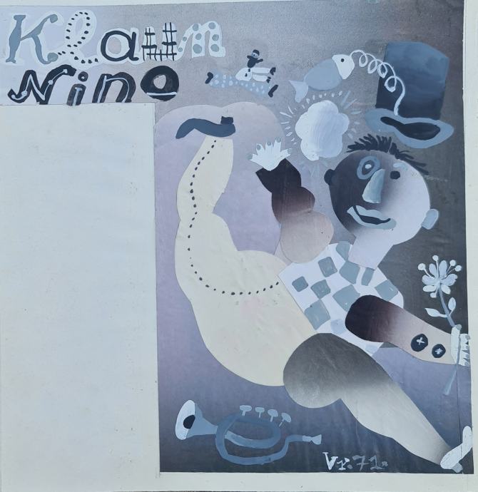 Vojo Radoičić "Klaun Nino" ulje/ kolaž na dasci 30x25cm; iz 1971 godin