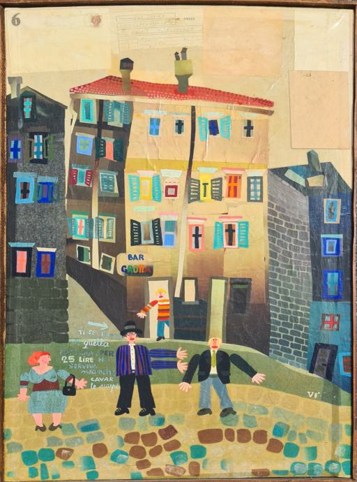 Vojo Radoičić "Puttana 25 lire no serviva" ulje na platnu / kolaž 84x54cm; iz 1976 godine;