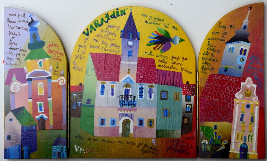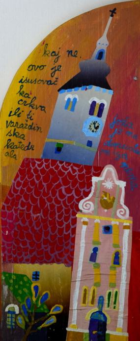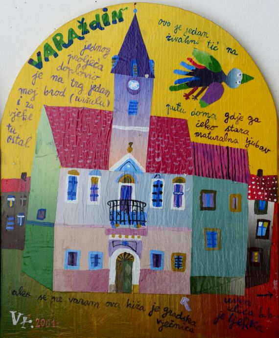 Vojo Radoičić "Varaždin" ulje na drvetu / kolaž 37x60cm iz 2001.