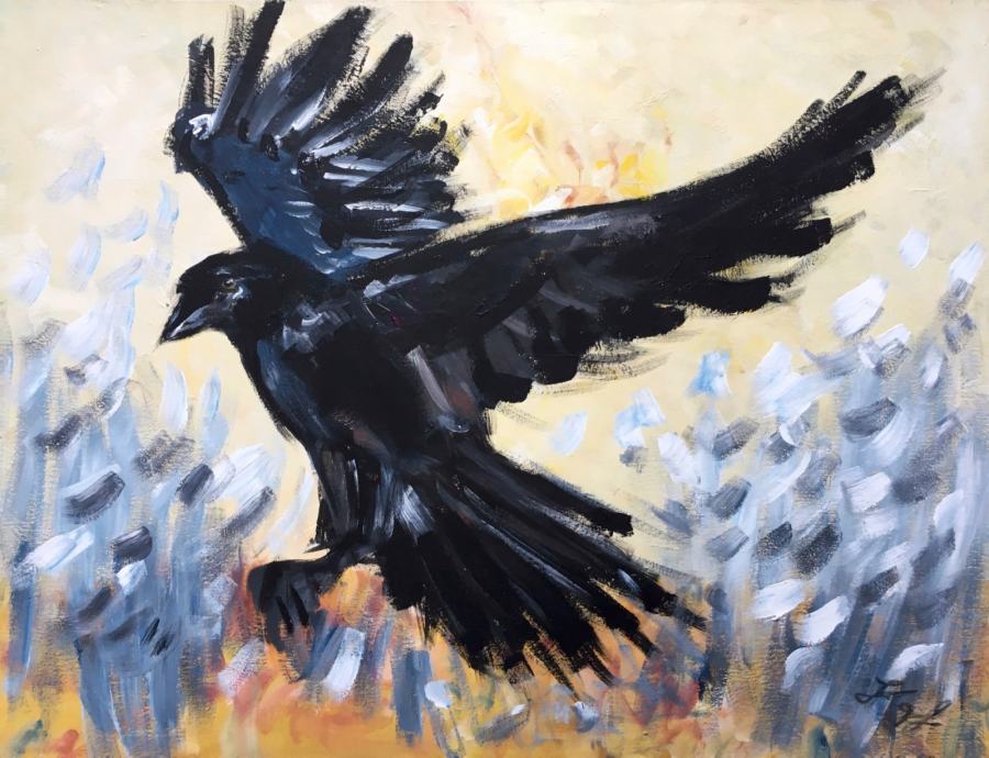 “Vrana”, iz ciklusa “Let”, 2021., Korana Gjalski Filipović, akril na platnu, 116x89 cm