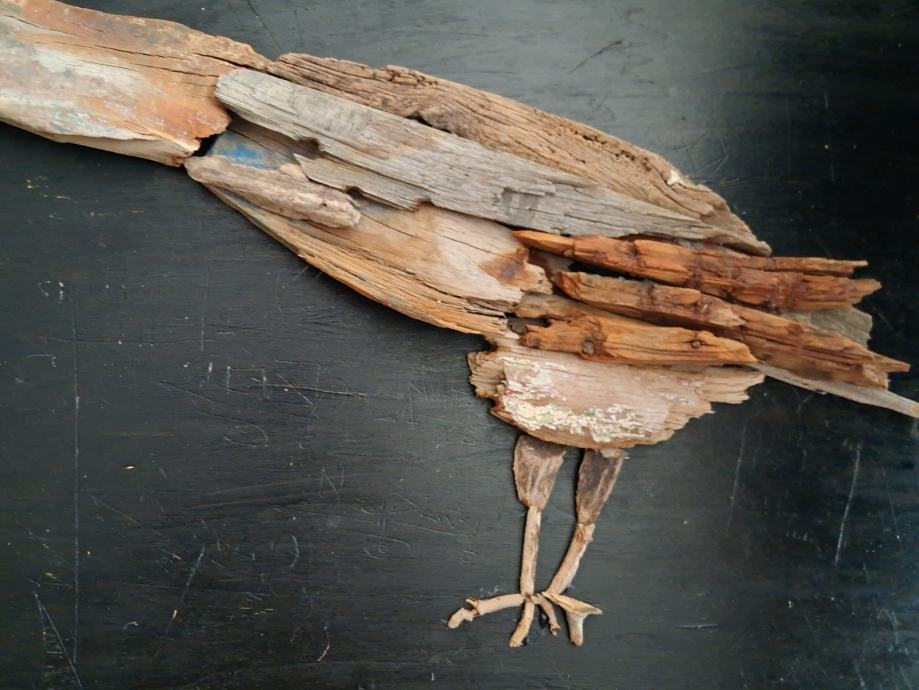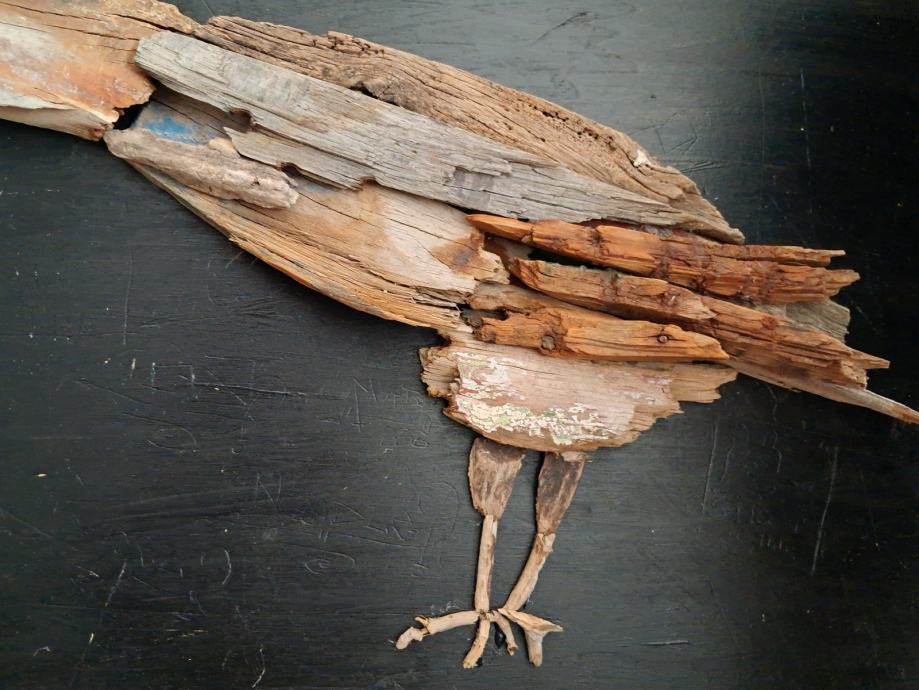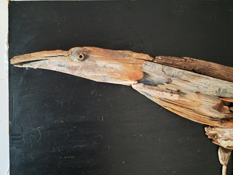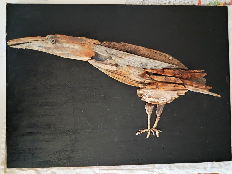 Ova jedinstvena slika nastala je komponiranjem originalnih komada naplavina sa obale mora.Svojim oblicima i bojom pretvorili su se u ovu posebnu vranu.Dimenzija slike je 62 × 45 cm