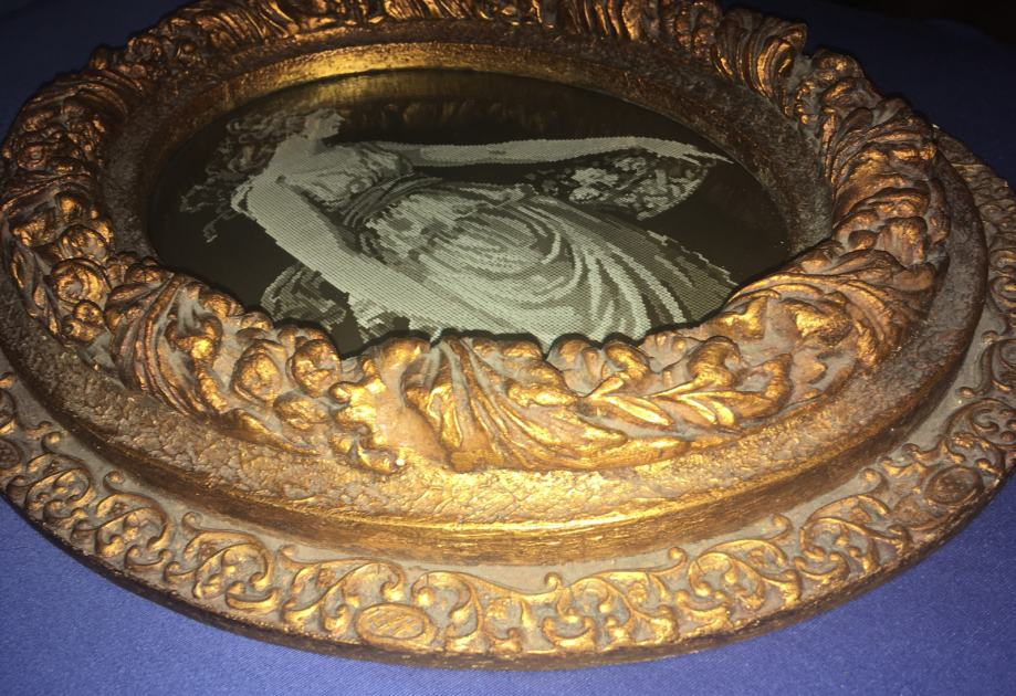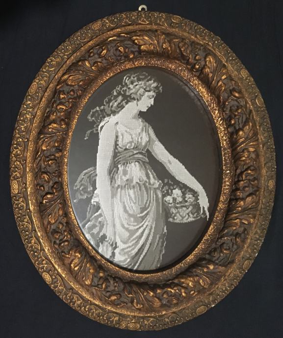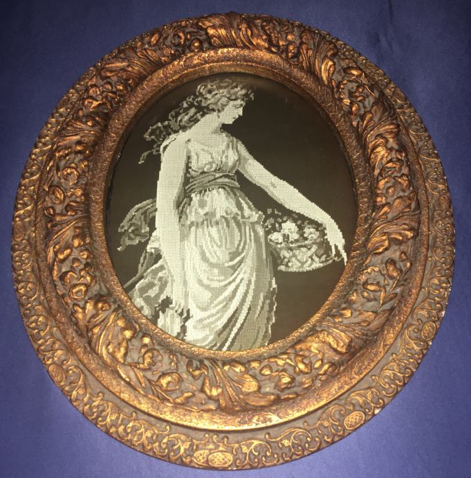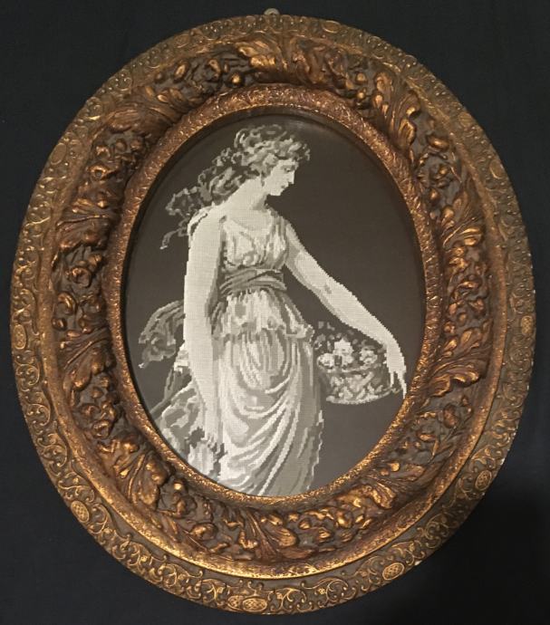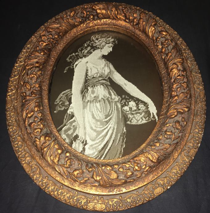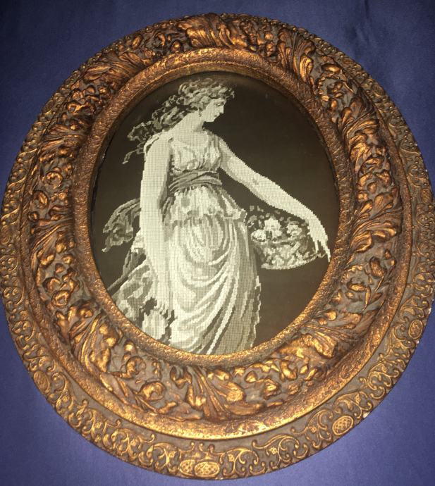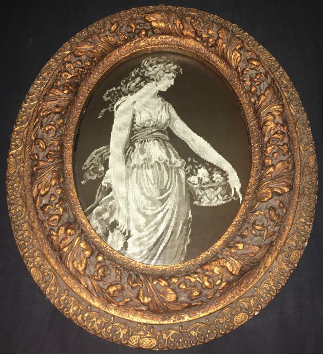 Stari Wiehlerov goblen s motivom iz grčke mitologije u prekrasnom i izrazito masivnom starom okviru. Visina x širina - 51x43cm (sam goblen bez okvira 35x27cm.