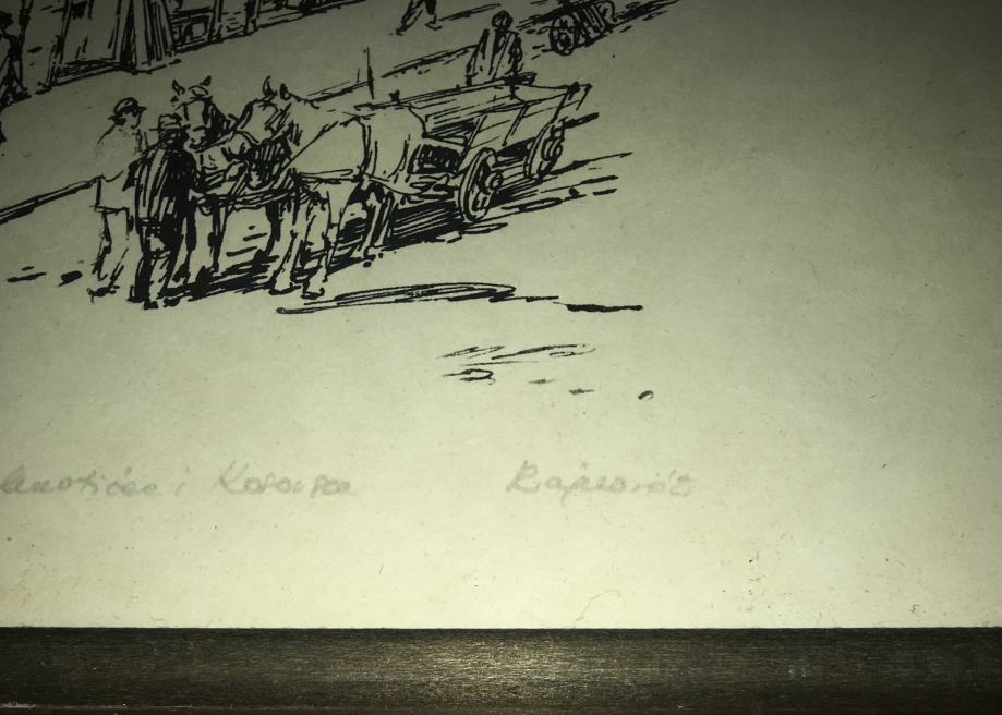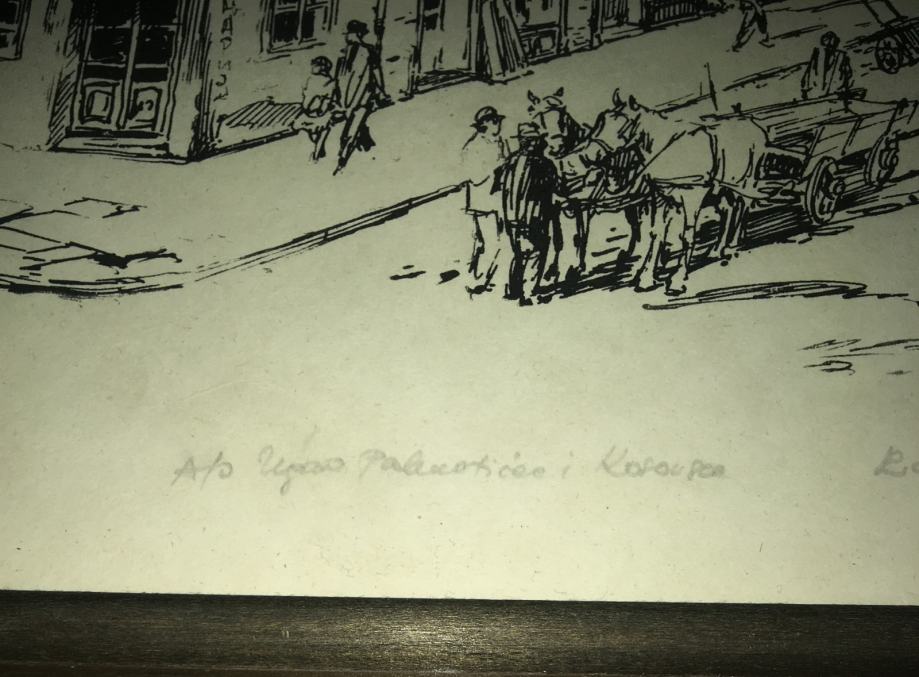 Potpisana i numerirana grafika slikara Z. Rajkovića. Naziv grafike je "Ugao Palmotićeve i Kosovske". Uokvireno i ostakljeno. DImenzije s okvirom 41x31cm. Pretpostavljam da se radi o poznatom srpskom akademskom slikaru Zoranu Rajkoviću.