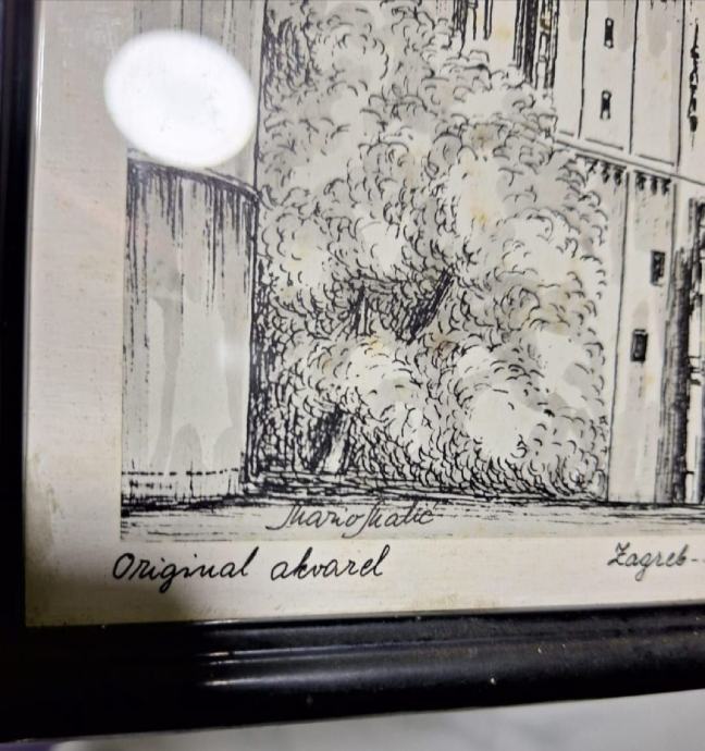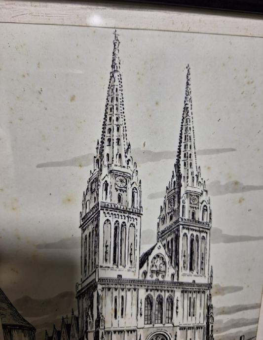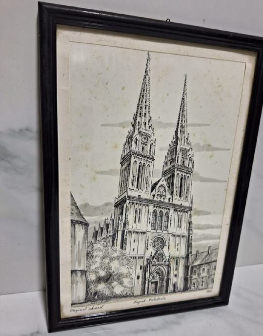 Zagrebačka katedrala, akvarel, original, Mario Matić, uramljena, ostakljena.
