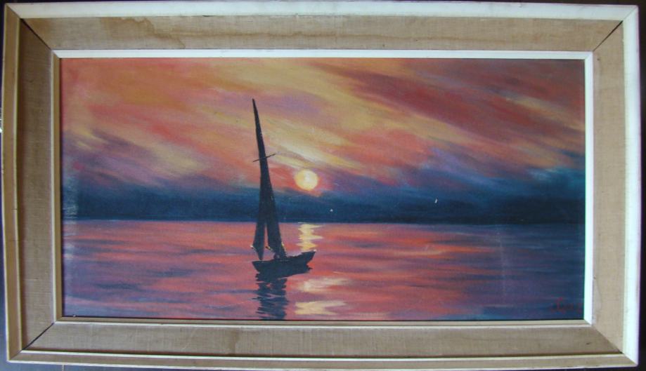 Ulje na lesonitu, 115 x 65 cm sa okvirom. Stanje vidljivo, treba novi okvir.