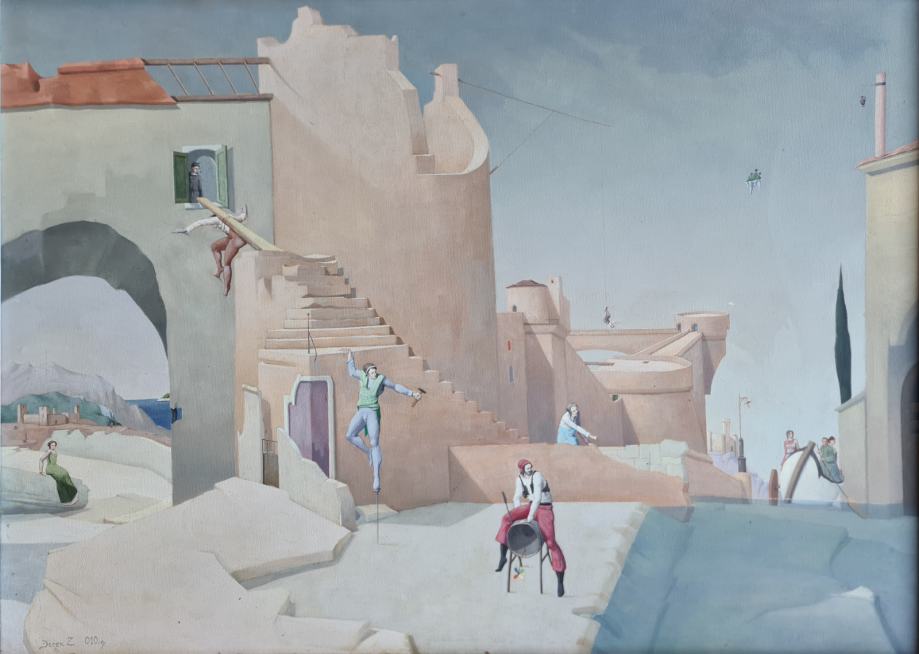 Zdravko Đerek "Graditelji iz ruševina" ulje na platnu 70x100cm;