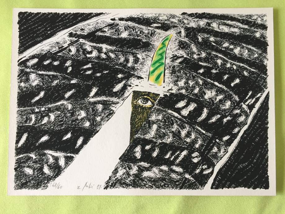 Jedna od pet grafika iz grafičeke mape ”Mala lirska kronika" objevjene 1989. godine u Rovinju.