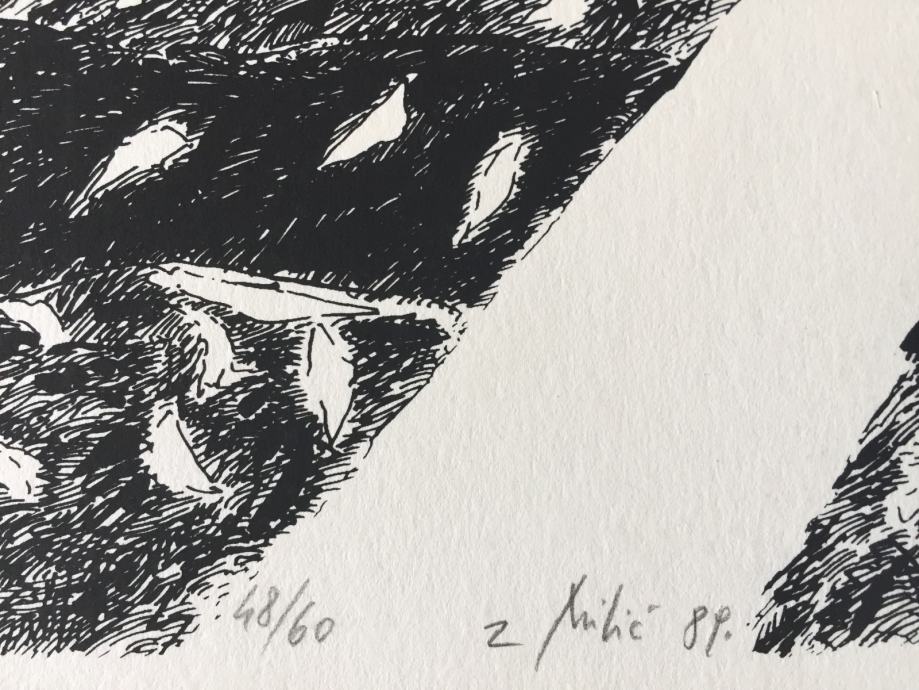 Svaki je grafički list autorski ručno dorađen i vlastoručno potpisan od strane autora grafitnom olovkom.