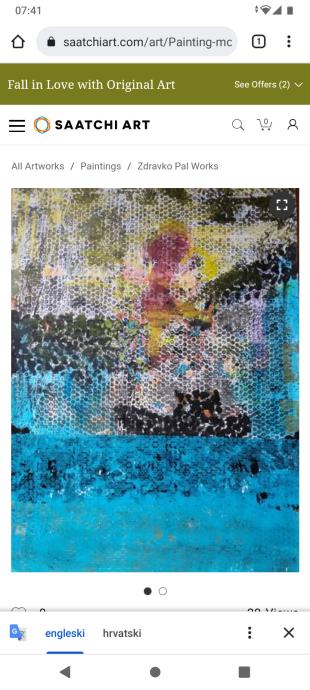 Apstrakcija u akrilu na velikom formatu akademskog slikara Zdravka Pala. Jedan od najpotentnijih hrvatskih slikara mlađe generacije, diplomirao u klasi profesora Igora Rončevića. Slika je izuzetno dekorativna i najsnažniji dojam ostavlja u svjetlom i modernom interijeru. Dimenzije su 100x70x0,1 bez okvira odnosno 105x75x2,5 sa okvirom. Slika je u savršenom stanju. Zbog veličine i ostakljenja samo osobno preuzimanje. Cijena je konačna. Kupnjom sve tri slike cijena iznosi 20000 kuna. Apstrakciju N°1 i Apstrakciju N°2 možete vidjeti među ostalim mojim oglasima.