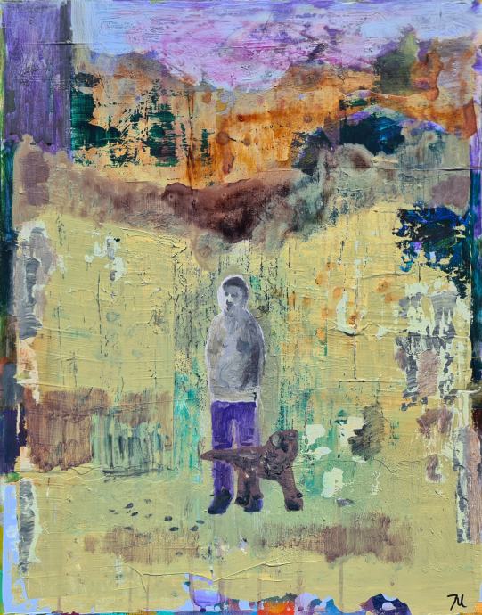 Zdravko Pal "Autoportret na Zrinjevcu" akril na MDF ploči 66x51cm:
