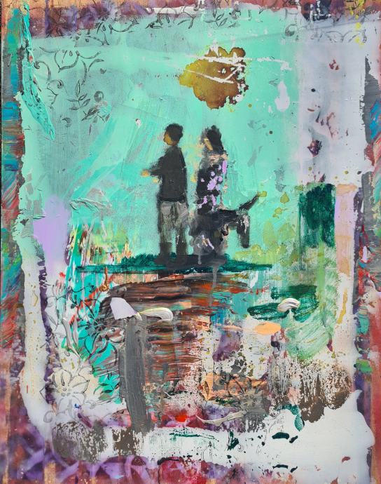 Zdravko Pal "Dječak i djevojčica s magercem"akril na MDF ploči 66x51cm