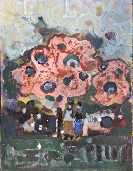Zdravko Pal "Gejše ispod stabla magnolije"akril na MDF ploči 66x51cm: