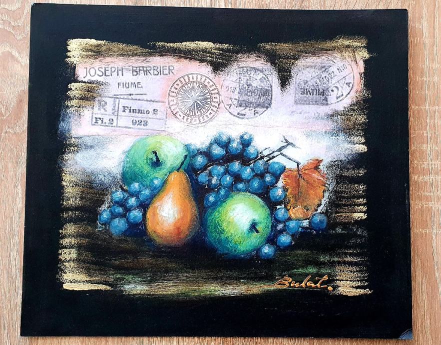 Akril na kartonu sa detaljima u zlatnoj boji.