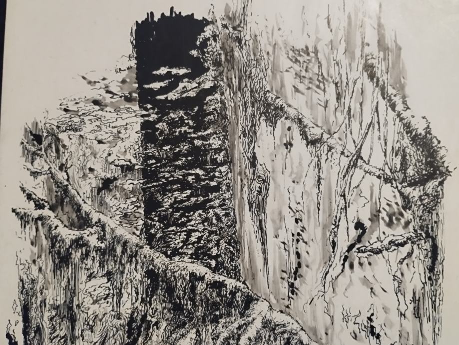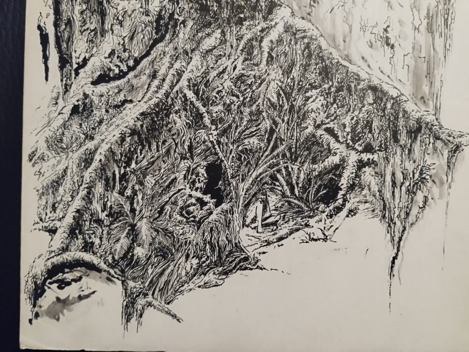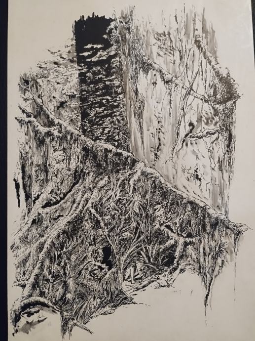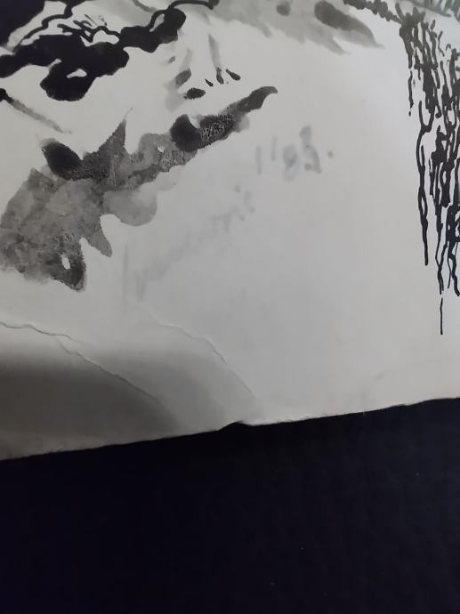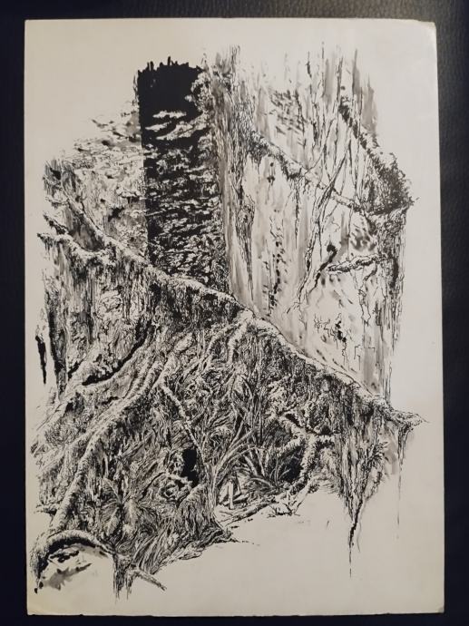 Izvrstan crtež iz 1983. srpskog slikara Željka Ivanovića. Motiv je šumski pejzaž. Dimenzije 30x21cm. Nije uokvireno.