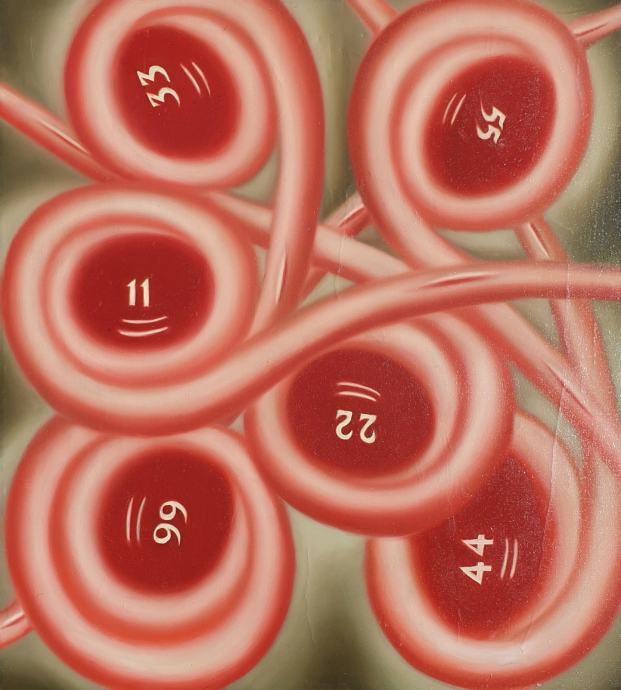 Željko Kipke "11 22 33 44 55 66" ulje na platnu 75x67cm iz 1997. godin