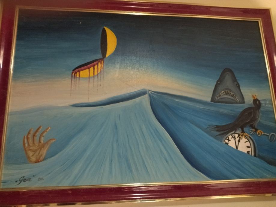 80x60 cm,"OPASNOST",ULJE,ZAVRŠENA NETOM PRIJE POTRESA U ZAGREBU,SA ORIGINALNIM CERTIFIKATOM AUTORA