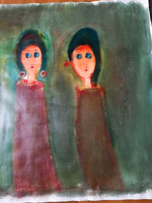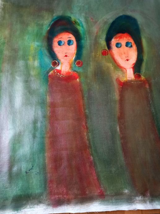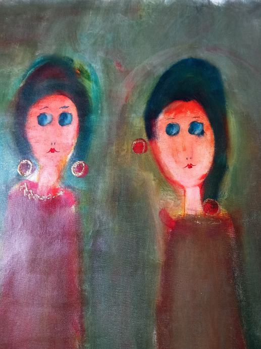 ŽELJKO ROGAĆ DVIJE PRIJATELJICE AKRIL-ULJE DIMENZIJE 80x80 NIJE URAMLJENA