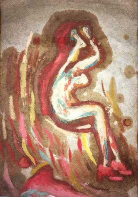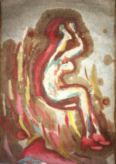 Crtež uljnim pastelom / temperom na papiru nepoznatog autora. Dimenzije su 76x50cm.
