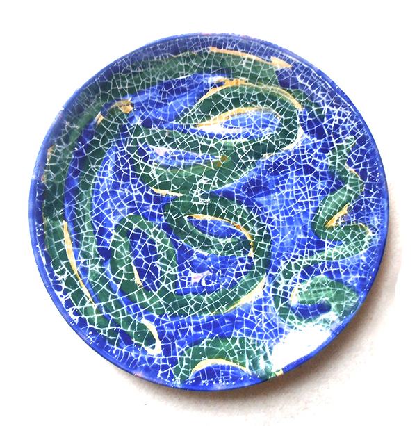 Milena Lah ( 1920-2003 ), keramički zidni tanjur iz 1965., glazurni krakle, promjer 34 cm.