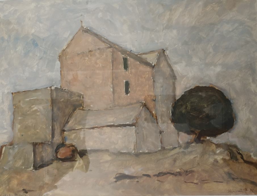 Kuće,ulje na kartonu,