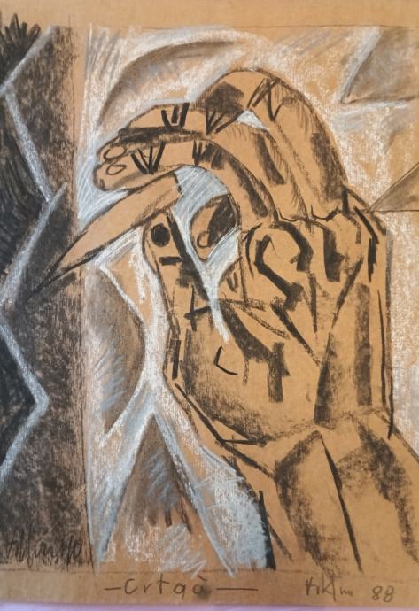 "Crtač", ugljen/pastel na natron papiru, 67x54cm, 1988.
