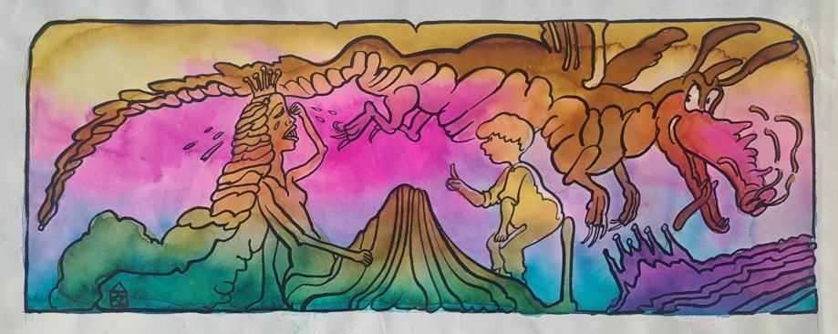 Zlatko Bourek "Kraljica i zmaj" akvarel 10x25cm; oko 1970; ponuda do