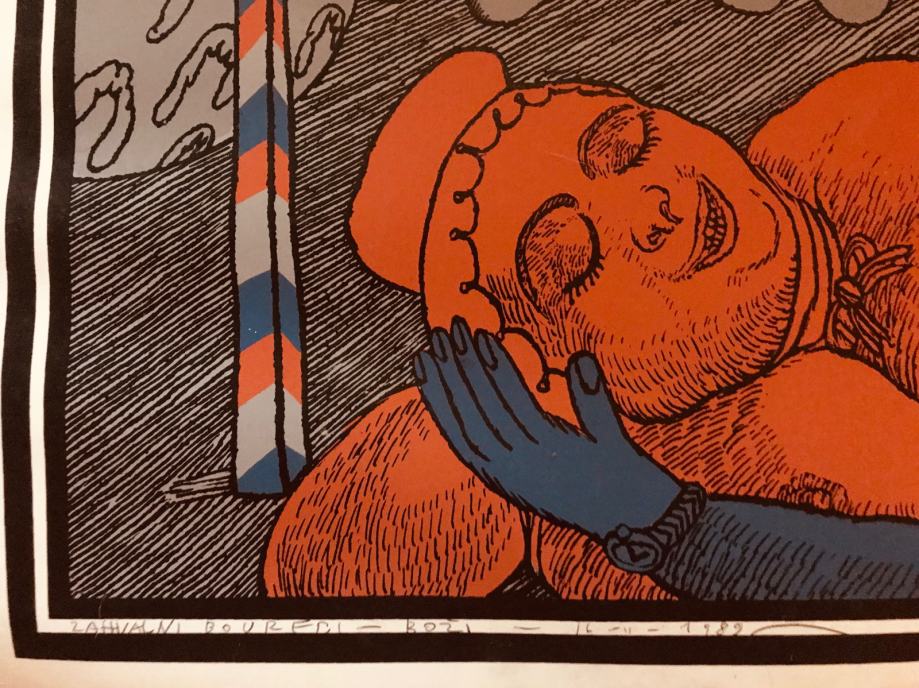 Serigrafija je potpisana i oštećena u donjem desnom kutu.