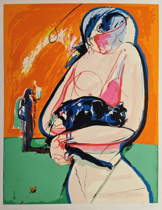 Zlatko Prica "Žena s mačkom" svilotisak serigrafija 70x50cm; iz 1987 g