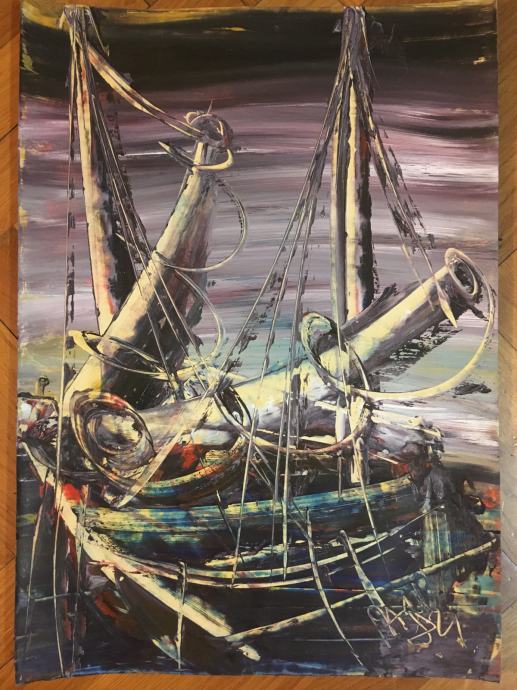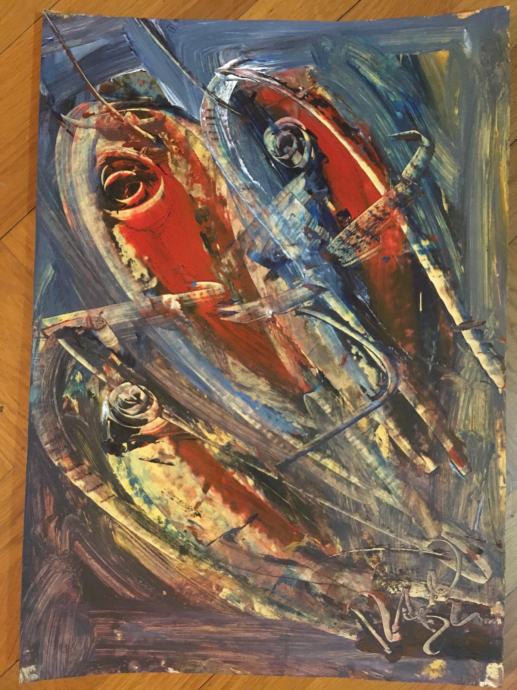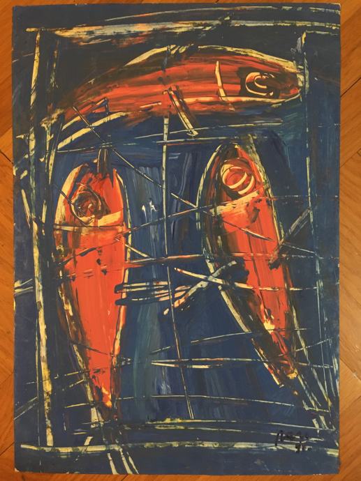 Kolekcija slika izvrsnog hrvatskog slikara i boema Zlatka Razla. Tehnika je vruće ulje / vosak na papiru ili kartonu. Dimenzije svih radova su cca 50x35cm osim zadnje dvije fotografije (ribe na predzadnjoj slici su 42x32cm a zadnja slika je 35x35cm). Cijena je po komadu.